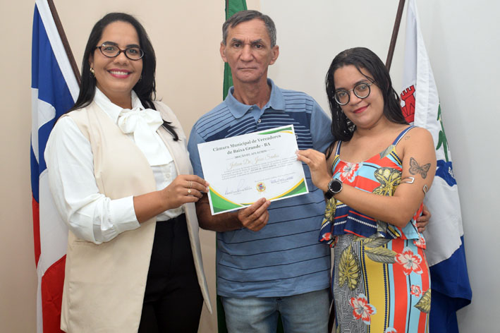 A Câmara de Vereadores de Baixa Grande entregou, na sessão da última sexta-feira (14), uma Moção de Aplauso ao servidor Joilson de Jesus Santos, conhecido como Joilson do Hospital. A homenagem foi proposta pela vereadora Anatália Borges (Naty), que destacou o comprometimento e a trajetória do servidor no Hospital Miltom Pamponet Ribeiro.